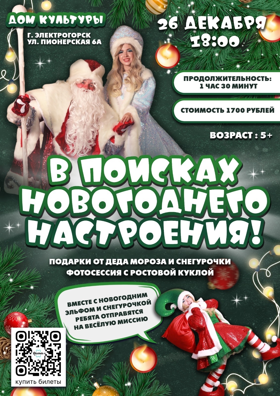 Новогодняя программа для детей 5+ в Электрогорске! Случилось ЧП: у помощников Деда Мороза пропало праздничное настроение! Спасти праздник можем только мы с вами!