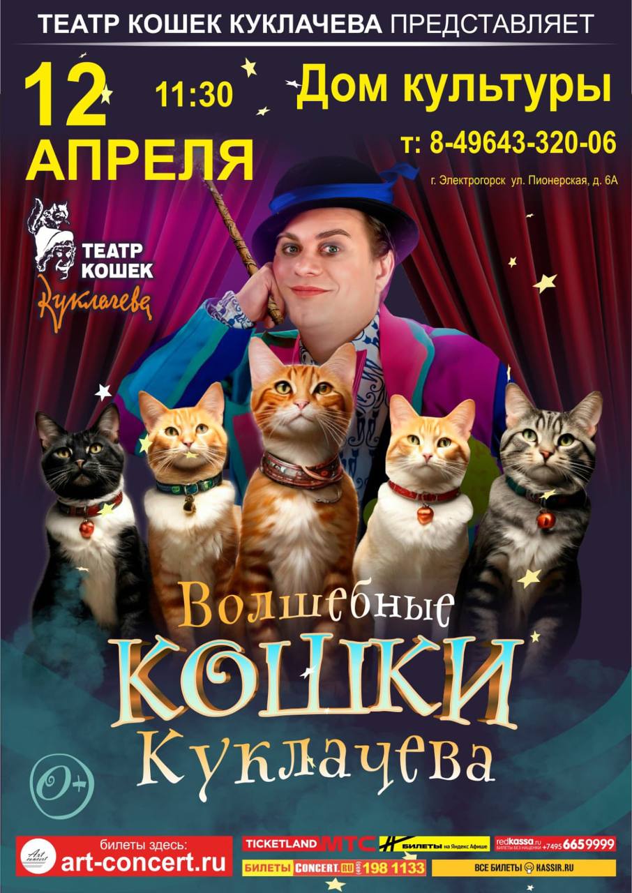 Фееричный спектакль, созданный младшим сыном народного артиста Юрия Куклачева и представленный в десятках городов России и Зарубежья, теперь в Электрогорске!